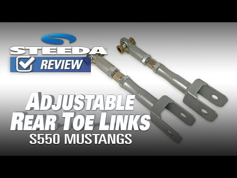 Our Steeda Adjustable Rear Toe Links are TIG-welded and powder coated for long-lasting protection and designed to allow for adjustments to be made with the part installed on the car - you do not have to remove this part for toe adjustment!