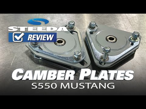 Our Steeda S550 / S650 Mustang Camber Plates for Mustang GT and EcoBoost are great for both street and track use. Our camber plates come into play especially when lowering your vehicle. With the addition of our new adjustable strut mounts on your lowered 'Stang you will be able to correct excessive negative camber and increase your front steering response. If you lowered your daily driven S550 or S650 Mustang, running the correct camber will eliminate uneven tire wear.