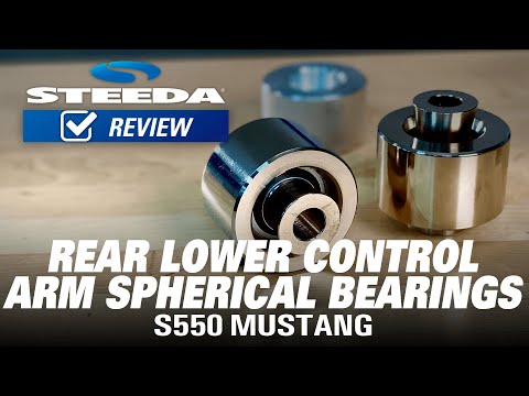 Our Steeda S550 and S650 Mustang Rear Lower Control Arm Spherical Bearings eliminates deflection of the factory bushing which is extremely important in any performance application. Deflection in the factory bushings can cause all sorts of negative handling affects. Our spherical rear lower control arm will correct understeer under acceleration of your S550/S650 chassis Mustang.