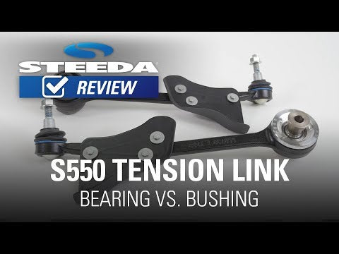 Steeda's industry-first S550 Mustang Tension Links, are a must for all lowered 2015+ Mustangs. These pieces have air scoops built onto them for added brake cooling and a higher durometer bushing than OE Performance Pack, which reduces bushing deflection, resulting in one major benefit: increased steering response. The Front Control Arm bushing in this kit can be upgraded to our 555-4128 - Steeda S550 Mustang Front Control Arm Bearing Kit to eliminate bushing deflection and reduce alignment and camber changes in high-performance driving. This, in turn, helps to increase steering response, decrease body roll, and increase cornering grip, helping you turn even better lap times!